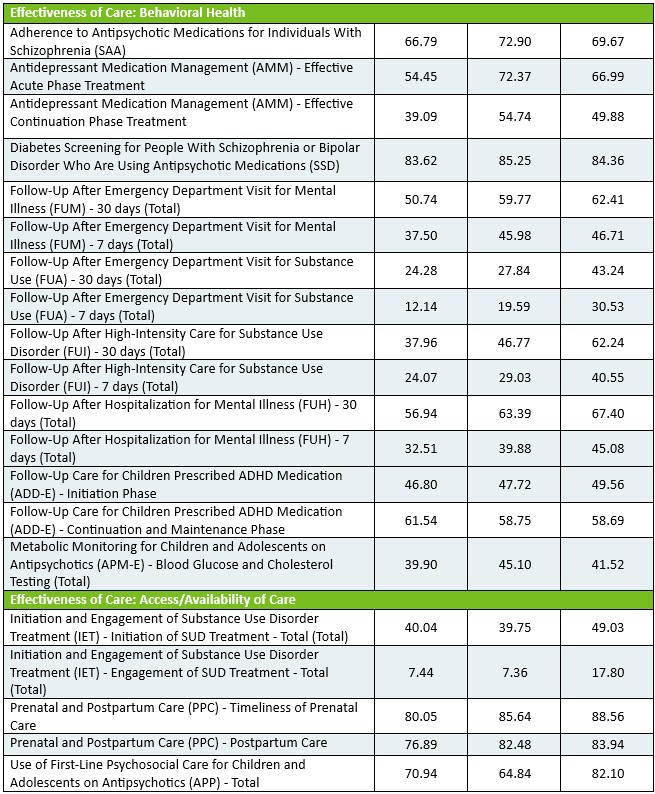 The HEDIS reporting year is the year after the data was collected. For example, “2024 Rate” includes data from January to December 2023 and “2025 Rate” includes data from January to December 2024.