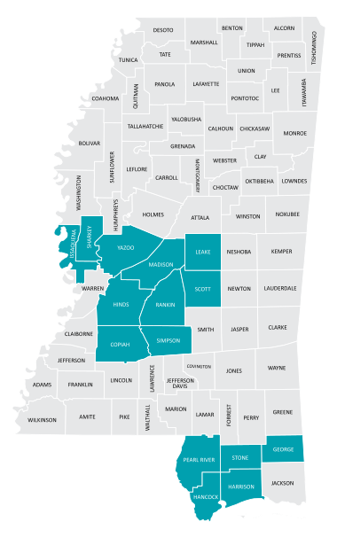 The service areas covered by Molina Medicare in the state of Mississippi are: